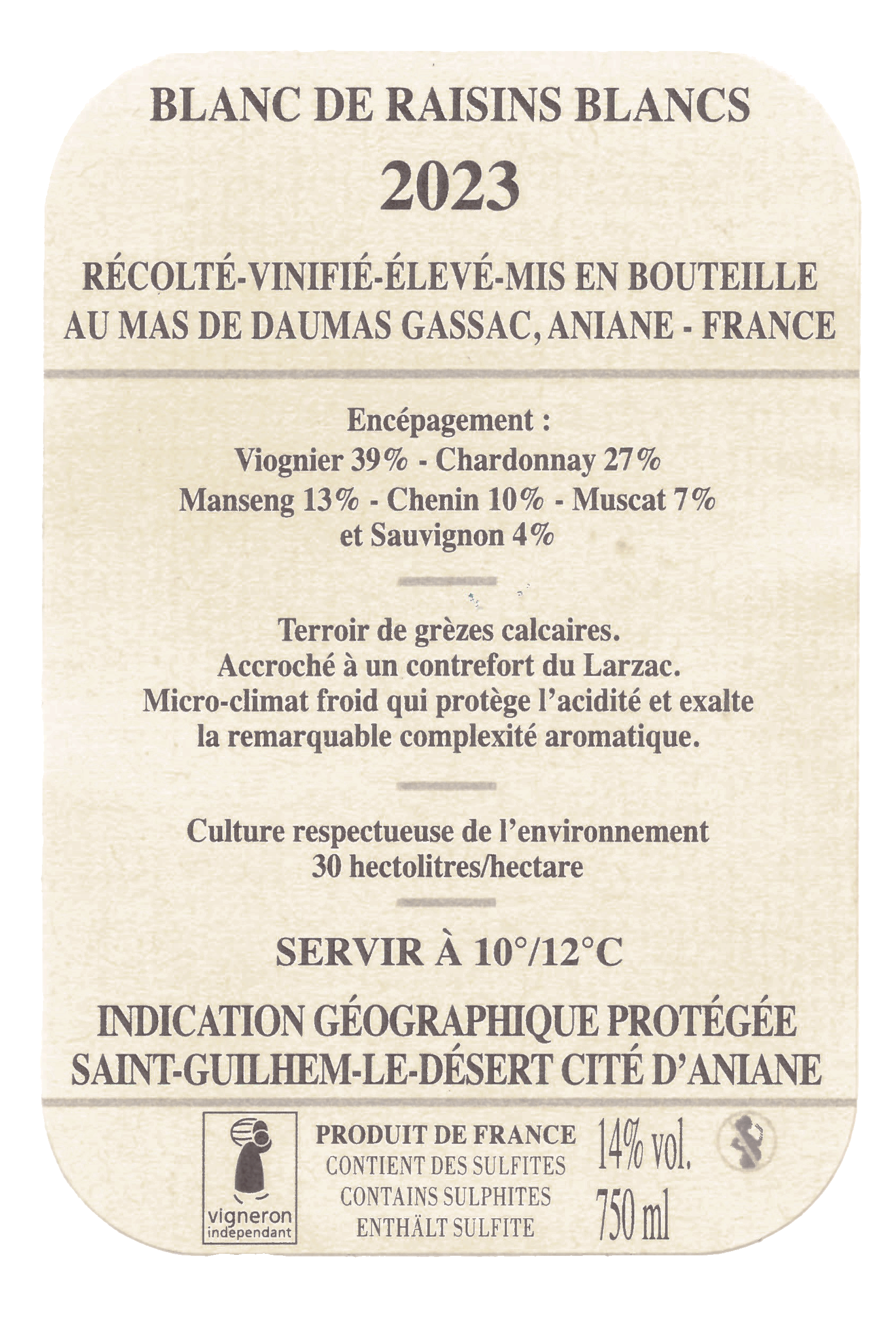 Accueil » Millesimes » Mas de Daumas Gassac Blanc 2023